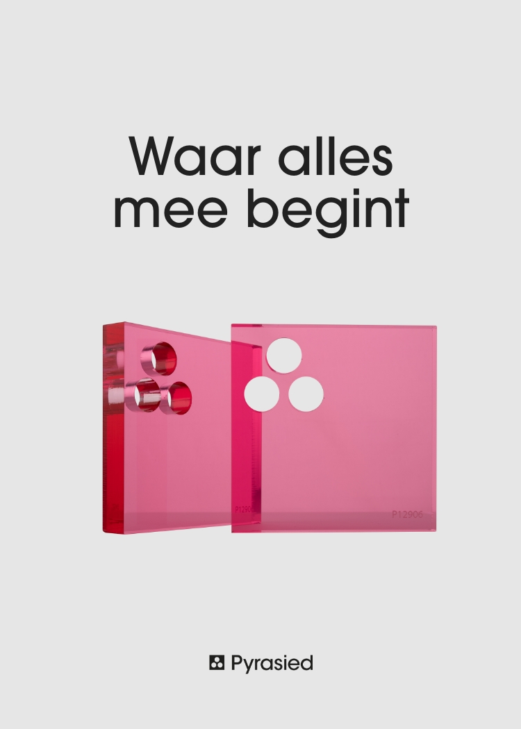 Uit liefde voor materiaal. Dit positioneringsthema beschrijft de ziel en passie van Pyrasied: alles wat de Pyrasied professionals doen komt voort uit liefde voor materiaal. Het is tegelijk een oproep: uit die liefde, deel het met de wereld om ons heen. Én het is de bron van het communicatieconcept ‘waar alles mee begint’ dat we aansluitend hebben ontwikkeld. Met dit concept geven we alle communicatiemiddelen een herkenbare Pyrasied signatuur.