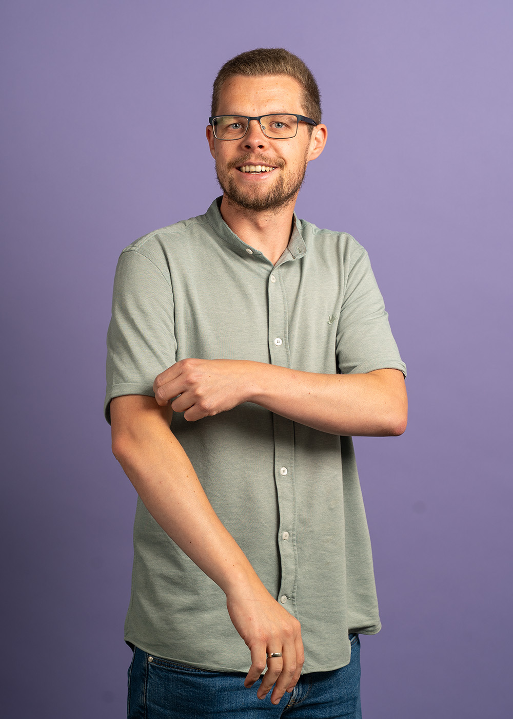 Van DTP’er en grafisch vormgever maakte hij de switch naar webdevelopment. En dat nieuws uit de webwereld? Dat volgt hij met hetzelfde fanatisme als de stand van SC Heerenveen. Want als seizoenkaarthouder vind je hem natuurlijk elke thuiswedstrijd in het Abe Lenstra stadion.